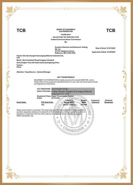 독립적으로 표준 실험실을 확립하고 시험 센터의 인증을 통과하세요, 그것이 주로 공기 정제 장치의 성능 표시기를 시험하는데 사용됩니다. 동시에, 제품은 카드르 가치, 살균률, 소음, 힘과 다른 주요 지표를 포함하는, 많은 국가 자격증 실험실을 판단하는 시험을 통과했고 그들 중 모두가 다양한 국가 자격증 기준에 도달했습니다